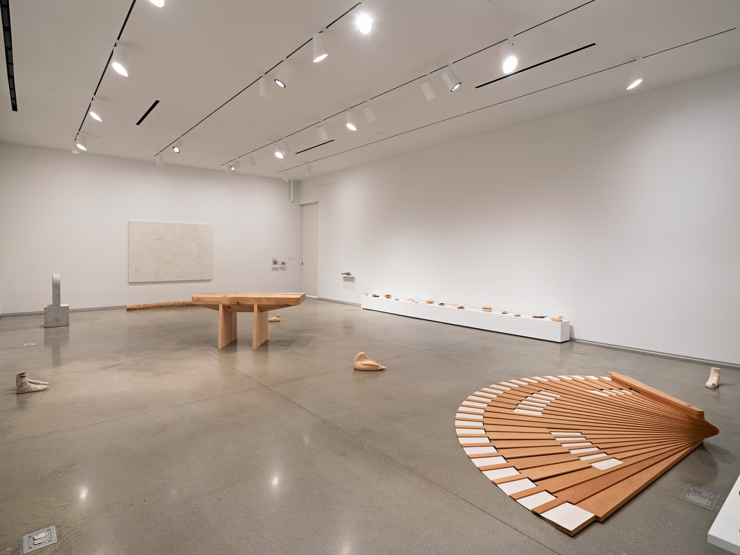 In Atterbury’s work we see a persistent questioning of what is legible, what is coded, and how meaning is constructed and destabilized over time. Objects are imbued with multiple meanings, often inviting viewers to consider how they can retain and release their histories. Like fallen leaves that decay and enrich the soil, the works in Leaf Litter accumulate significance through the act of reinterpretation. Each object functions both as a relic and as a catalyst for renewal. A hand-carved peanut, a pair of articulated fish, a single wooden sandal the size of a table — these forms are more than markers of inheritance. They point to transformation, the potential for growth that is contained within every ending.
