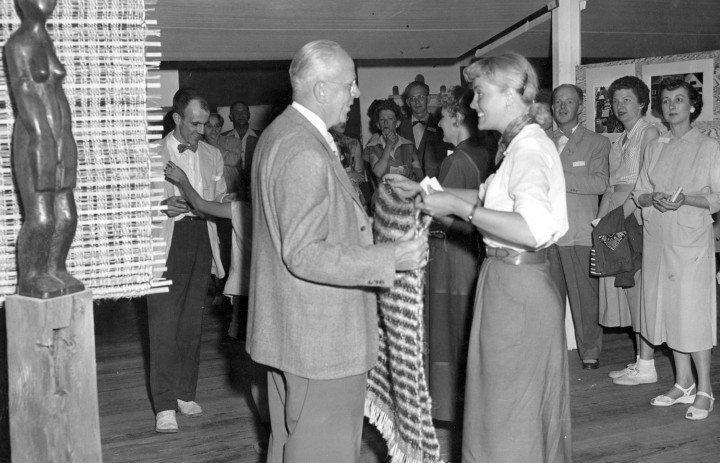 Initially an artists’ cooperative known as Maine Coast Artists, the center was founded with a collaborative, catalyzing spirit, around an excitement for not just Maine’s rich artistic history, but also as a way to showcase the work of painters, sculptors, and photographers working contemporaneously. For its first fifteen years, the center had no permanent space and a rotating slate of volunteer curators. Early exhibitions were held at the town office, in a barn, and in a potato barrel storage loft. But those shows also included such future luminaries as Alex Katz, Louise Nevelson, and Fairfield Porter, to name a few.